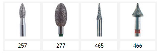 Principalmente para la eliminación de caries de manera rápida y segura, garantizando el relleno posterior del soporte permanente mediante una formación precisa. Para este procedimiento, se utilizan las formas de fresas dentales de bola y fresas dentales cilíndricas con punta recta y redondeada.