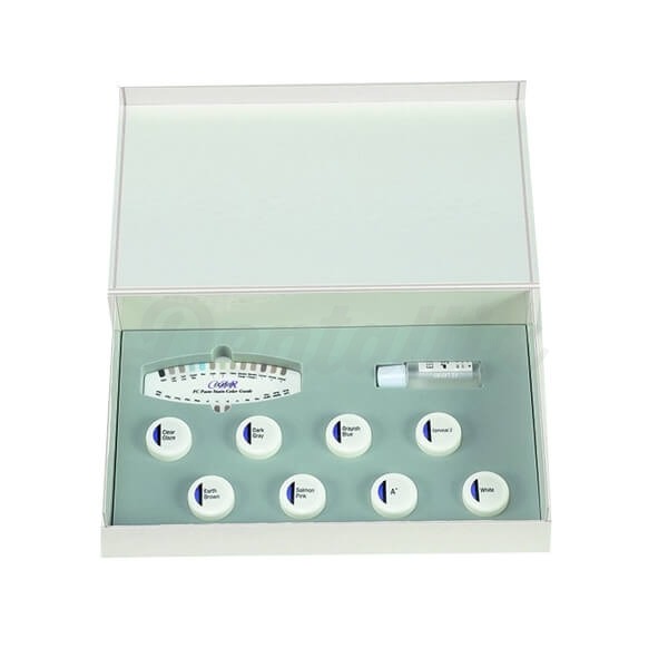 - La completa variedad de tonos azules y grises (gris claro, gris oscuro, azul grisáceo y azul) permite reproducir efectos de transparencia azul-grisácea para la zona incisal.