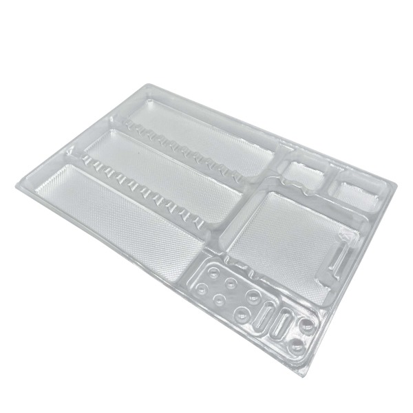 - Plateau à usage unique transparent.