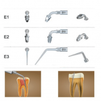 A gama de insertos para endodontia foi concebida para facilitar os tratamentos dos canais radiculares, como a limpeza, a desinfeção e a moldagem. Estas pontas permitem o acesso a áreas de difícil acesso nos canais radiculares, melhorando a remoção de detritos e optimizando a irrigação. O seu desenho fino e preciso, combinado com a vibração ultrassónica, ajuda a limpar o sistema de canais radiculares de forma eficaz e eficiente, melhorando os resultados do tratamento endodôntico.