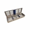 - Cassete de esterilização com ranhuras personalizadas para a inserção de instrumentos dentários.